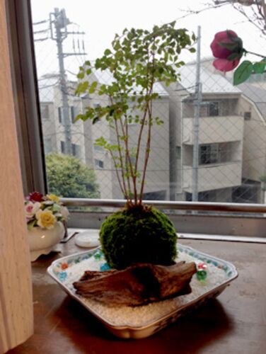 テラリウムの白砂の縁が黒ずんできて、げ、もしかしたらカビか?と。取り出して、米を研ぐ要領で、がしがし洗う。 苔玉も、少しずつ大きくなってて、数日ごとに水に浸すための容器ぎりぎりにまでなってきたよ。 水槽から出して、こんなふうに盛り付けてみま…